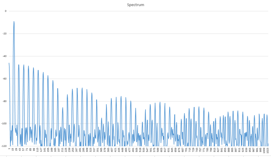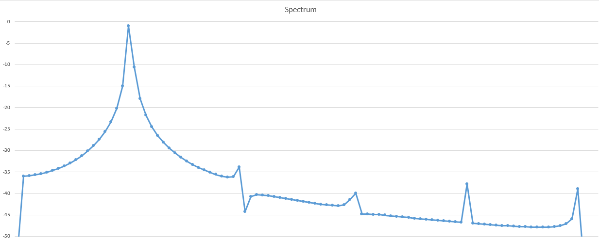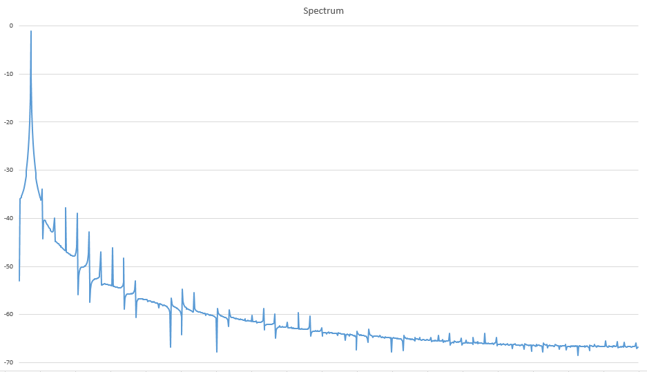This plot shows the spectrum of a wave that has been clipped on the positive peak, and if you have ever read any of my articles here, you may recognize it as this one captured coherently:
