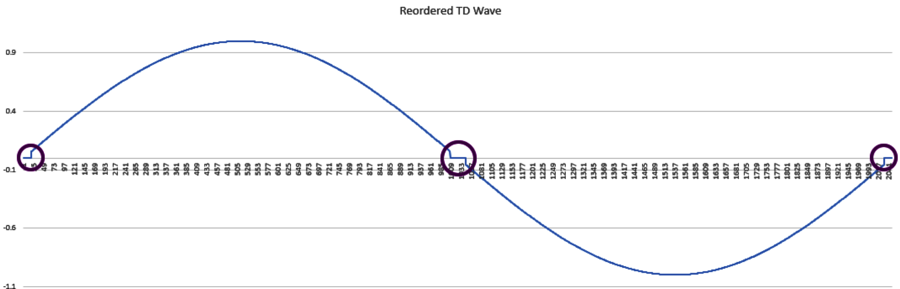 Now you can barely see it, but if you look at the zero crossings (both of them) you can see a slight "bump" in the wave. Let me show you a closup: