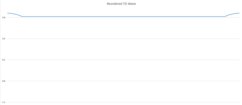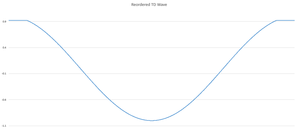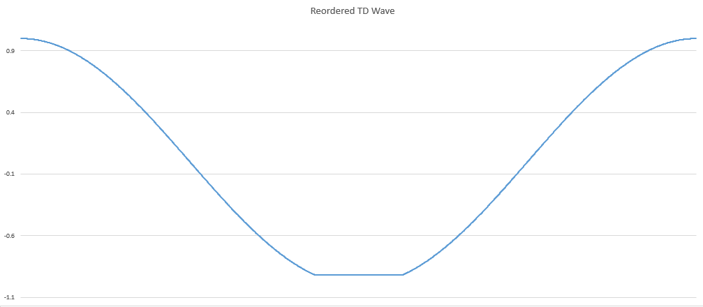 So now, let me ask the obvious question: Why, if I paste this clipping back onto the clipped cosine wave doesn't the spectrum just explode with harmonics, double what we see here in fact? Instead, if we do an FFT on just a pure cosine wave, we get no harmonics at all, save the fundamental, harmonic #1. Come on, think about it! Why would that happen? Because of the phase!
