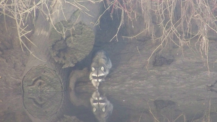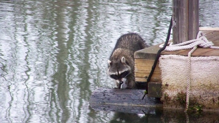 For the last few days we have had a troup of racoons migrating between the marina and the island by taking the short swim across. Here is the one of four coons intending to cross today with a water temperature of about 36 degrees.