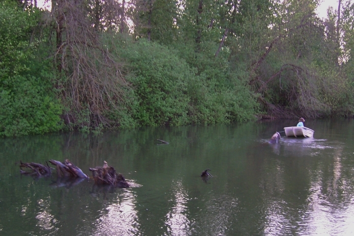 We took a little cruise in the Lil' Ambition and saw these good sized trees floating down the Columbia. Any time the water level goes up lots of stuff starts floating down. When I was in San Nicolas Island we used to have huge beach bonfires made with trees that floated down from Oregon. These fires were so big the SeaBees would use bulldozers as fire-pokers. Crazy CBs...