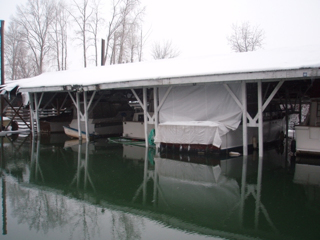 This is why I'm shoveling, the moorage is sinking under the 14 inch snow and ice load that the weather has thrown at us.