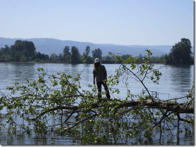 We're so happy we chose to leave the slip and come to Vancouver Lake. The record snowpack in Eastern Oregon, Washington and British Columbia is melting raising the river to historic new levels. The lake is not immune to these changes in river level, but at least there is no current, which brings with it the threat of being wholloped by huge logs and other debris that gets torn away from the shore by high waters and currents approaching 1.5knots. Click on the picture to get the latest river level at Vancouver.