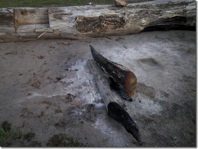 And here is where the log used to be. Over the next few weeks the ash will disappear and there won't be a trace of my fire. Unlike the someone's old firepit on the far left which has been there for over a year.