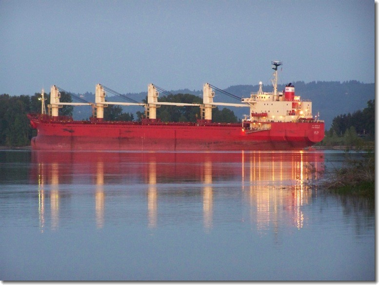 We started our journey to Vancouver Lake at 7:10AM so we could catch the tidal inrush into Lake River. We checked AIS and saw only one ship, Sound Reliance coming upstream. No biggie we thought, until we saw her upclose and personal. Her wakes were pretty big, big enough to wash over the front deck and give us a hobby horse ride in the river for about an hour, but that was it.