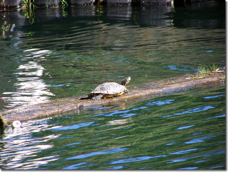 Snake! Don't worry, just a Garter snake sunning himself on a log. There are not too many places for a snake to hang out now that this whole area is flooded!