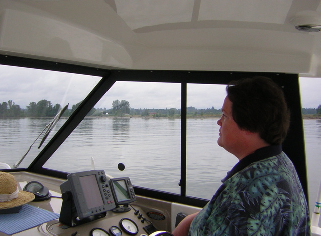 One day years ago, we were hanging out in front of Caterpillar Island in our Bayliner 2452 Arecales watching the world go by. We saw Maverick pushing a quartet of barges upstream towards Portland, then mysteriously he seemed to release them and just drive away from them!